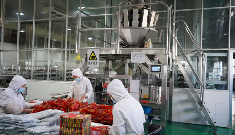 炒制牛肉制品的組合烘干箱、給袋式真空包裝機、機器人碼垛機等一系列具有開創(chuàng)性的設備